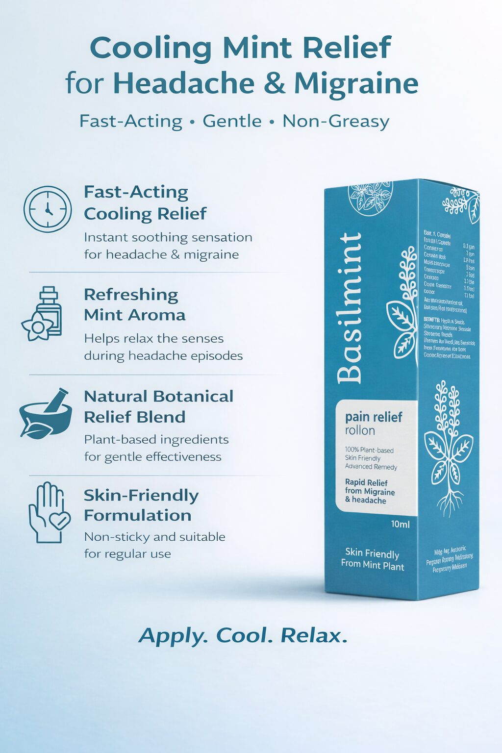 BasilMint Roll-On: Cooling Comfort That Conquers Headache & Migraine